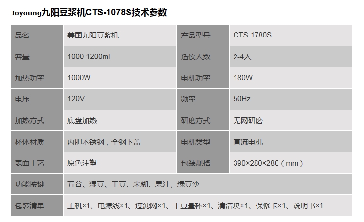 2014全新升级款Joyoung九阳豆浆机CTS-1078S