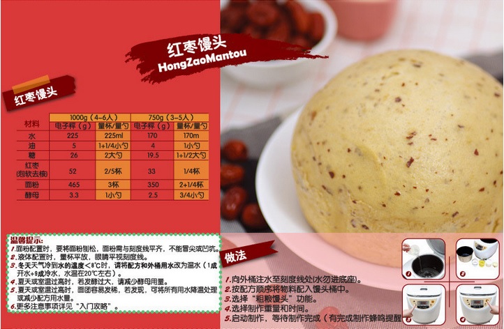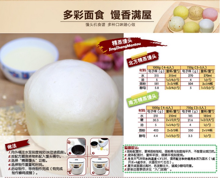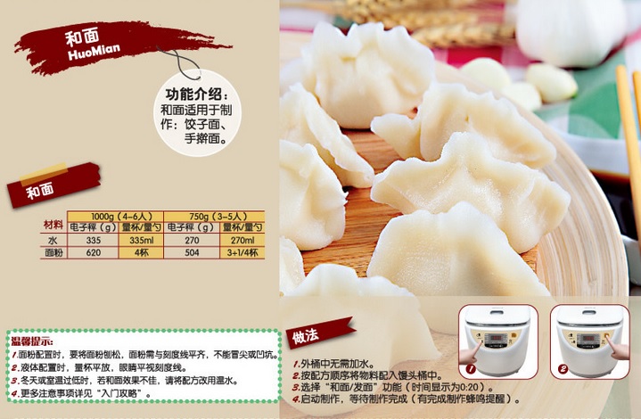 除了做馒头,还有和面功能(和出来的面团可做饺子皮和手擀面……)