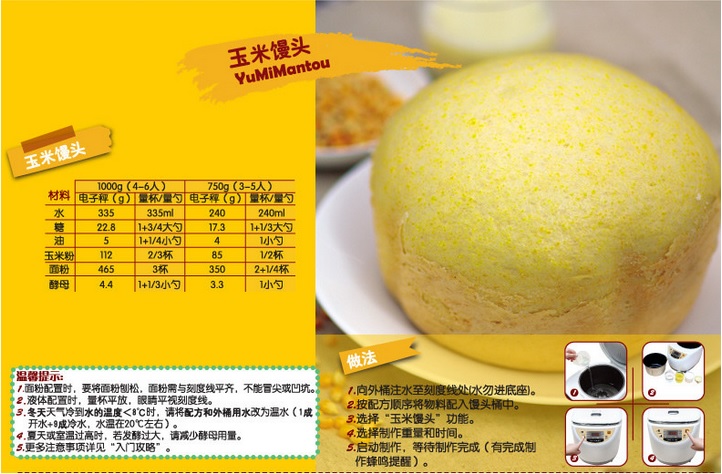 答:不能的哦,因为九阳家的馒头机是加水,用蒸汽把馒头蒸熟的,而面包都是用加热管把面包烤熟的,所以馒头机暂时不能做面包。